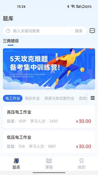 内容涵盖特种作业上岗证,职业技能等级,职业资格考前辅导,行业企业等各类专业课程,海量试题,全面助力学员考证上岸。