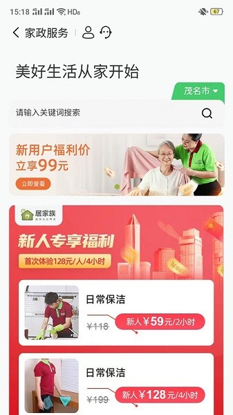定位服务:根据用户所在城市,实时定位附近的家政服务机构。