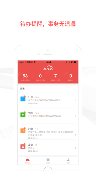 一款为友云采的采购企业用户提供采购协同支持的app,包括待办任务、任务跟进、业务协同消息推送、及时通讯等功能,主要涉及采购订单、到货、对账发票及配套审批业务。