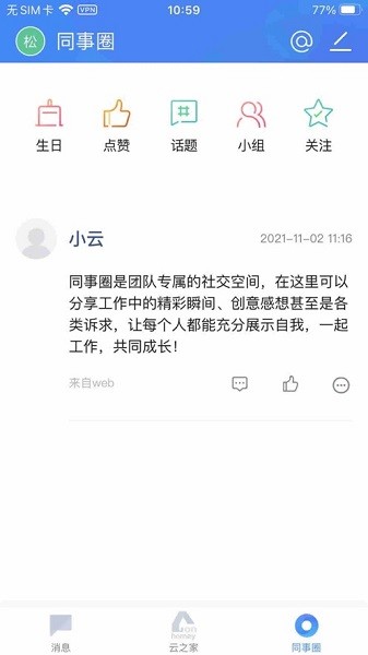 -消息沟通:基于企业通讯录,方便员工发起沟通,提高协作效率。