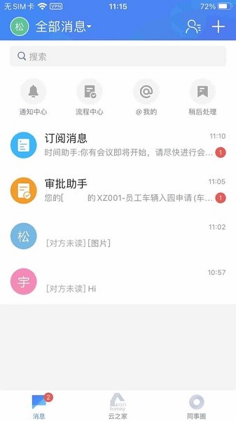 IM沟通:快速连接企业内部员工,一键发起基于企业通讯录的跨组织消息沟通,已读未读,消息提醒等高效便捷;