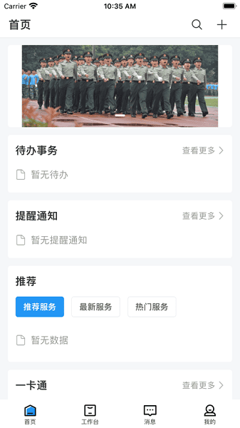 可以看到校园的联络记录数据和工作通知信息。
