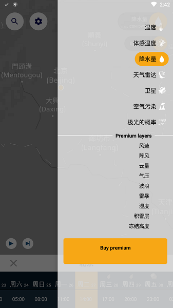 2、免费(卫星云图、温度、降水量、空气污染〔雾霾〕、天气雷达、风向等);
