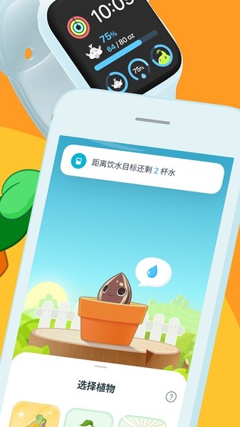 - 选择喜爱的植物:3 种不同难度的小植物,循序渐进地陪你一起轻松培养喝水习惯