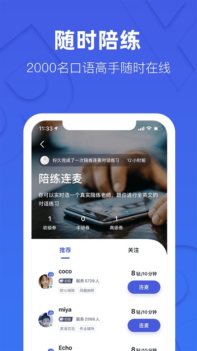 2、提供的在线与伙伴对话的方式更加的有趣,能够及时练习口语练习。