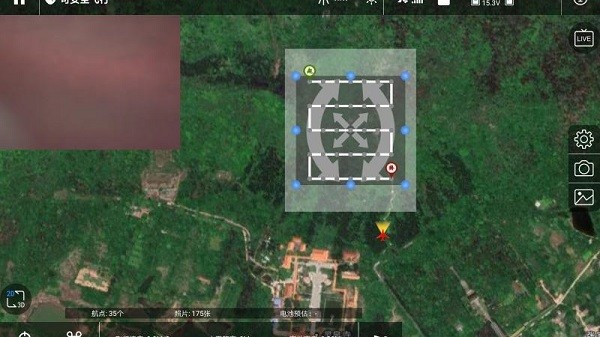手指拉框实现调查点区域放大、缩小、旋转,滑动选择飞行参数,自定义飞行区域或者选择矩形、圆形区域,手指完成航线规划。