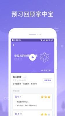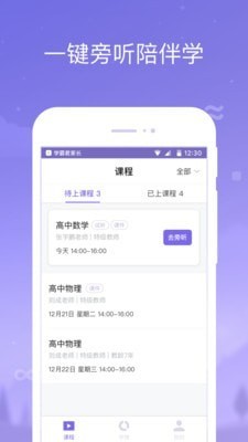 3、键旁听陪伴学,通过学霸君1对1家长端手机版家长可以在线旁听孩子正在上课的课程
