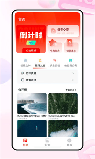 APP是一款深耕在线职业教育备考学习平台,覆盖金融、财会、职业、医药、等多种考试在线课程培训、智能题库、报考提醒、以及备考心愿墙等服务,是一站式考证学习备考平台。