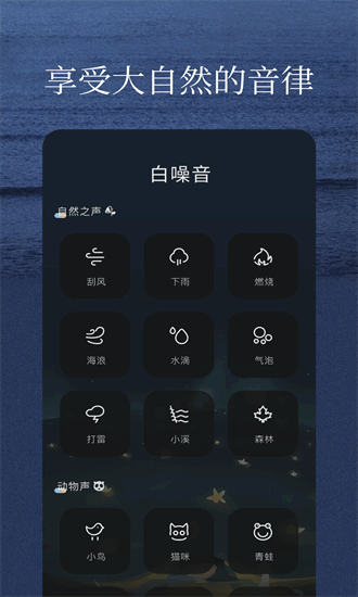 是一款帮助你睡眠的应用。我们从大自然与冥想中获得灵感,在软件中提供了自然声音等音频内容,帮助你从快节奏的生活缓慢下来,让你快速的进入睡眠的状态——减少焦虑与压力、保持专注平静、放松思绪,获得更好的睡眠质量。