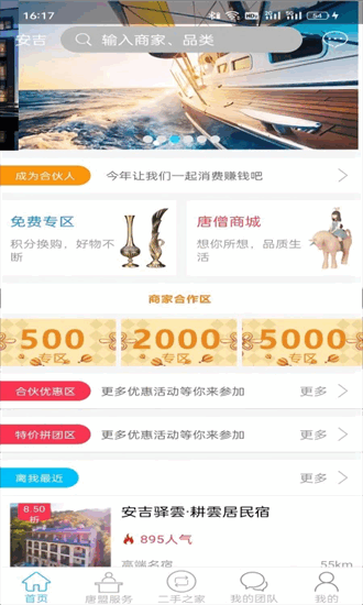 唐僧网可以为用户提供非常多优质服务,你可以在上面找到附近的吃喝玩乐服务,并且它还会发放满减优惠券,先到先得你可以立即抢购。你还能在线预订民宿,具体的房间信息可以咨询商家。