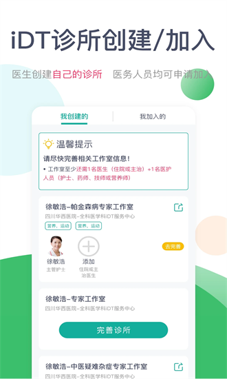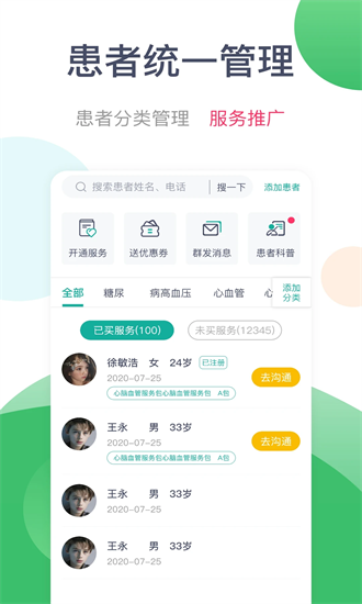 管理患者,可以在本应用上查看每一个患者的状态随时给与诊疗意见;
