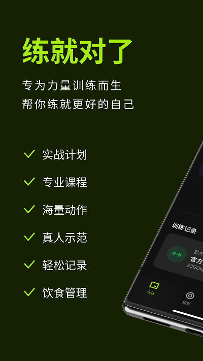 - 三分练七分吃。记录下日常饮食,获取专业饮食建议,可以帮你配合训练计划,更高效地达成目标!