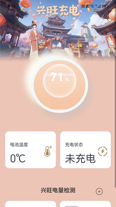 1.电量信息展示:兴旺充电实时显示手机电量百分比,让您随时掌握手机的充电状态,确保手机电量充足。除了电量,应用还展示电池温度及充电状态,让您更加全面地了解手机电池的健康状况。