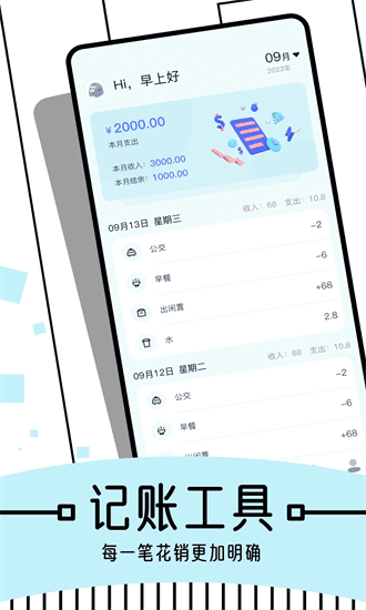 可以记录自己生活中用的开销,每一笔都有明确的记录