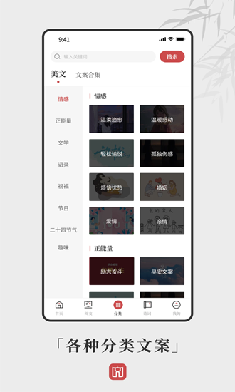 「文案分类合集」-文案够文案句子分类丰富多样,句子控们的好物来啦!好句读赏来这里,去文案够,为您带来多种类型的文案句子素材,励志语录、情感、毒鸡汤、早安文案、朋友圈文案、抖音文案、春节文案新春文案、亲子家庭教育、二十四节气、一句话心情语录等语录大全,新春佳节发圈不用愁,句子文案等你来文字阅读品读。恋爱话术爱情语录,藏头诗,情话王不在话下。