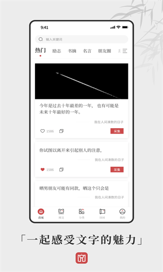 古诗诗词大全,文学书摘,名人名言,人物作者等文学内容,更有找文案无烦恼随身金句谷,随时成为您的省心素材,朋友圈转发分享好内容。