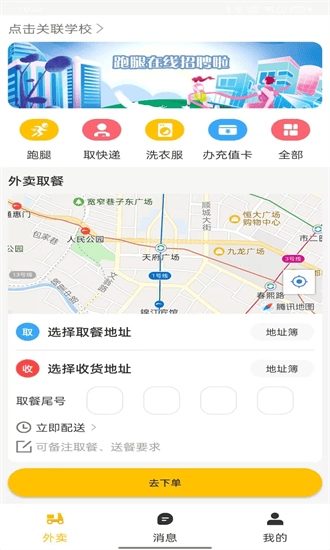 一款为在校大学生提供便捷生活服务的APP,包括跑腿、外卖取餐、取快递等服务。解决外卖无法进校园的难题,实现外卖“最后一公里”。