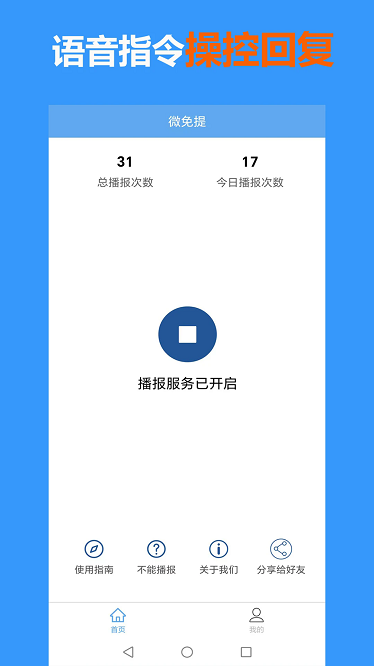 微免提是一款微信语音播报的APP,相当于为您的手机微信打开了免提模式,可以自动播报微信收到的文字及语音消息,也可以用语音操控微信回复或发送消息。让用户免手使用微信,解放双手,是特殊行业或特定使用场景下的好帮手,是一款不错的微信伴侣APP。